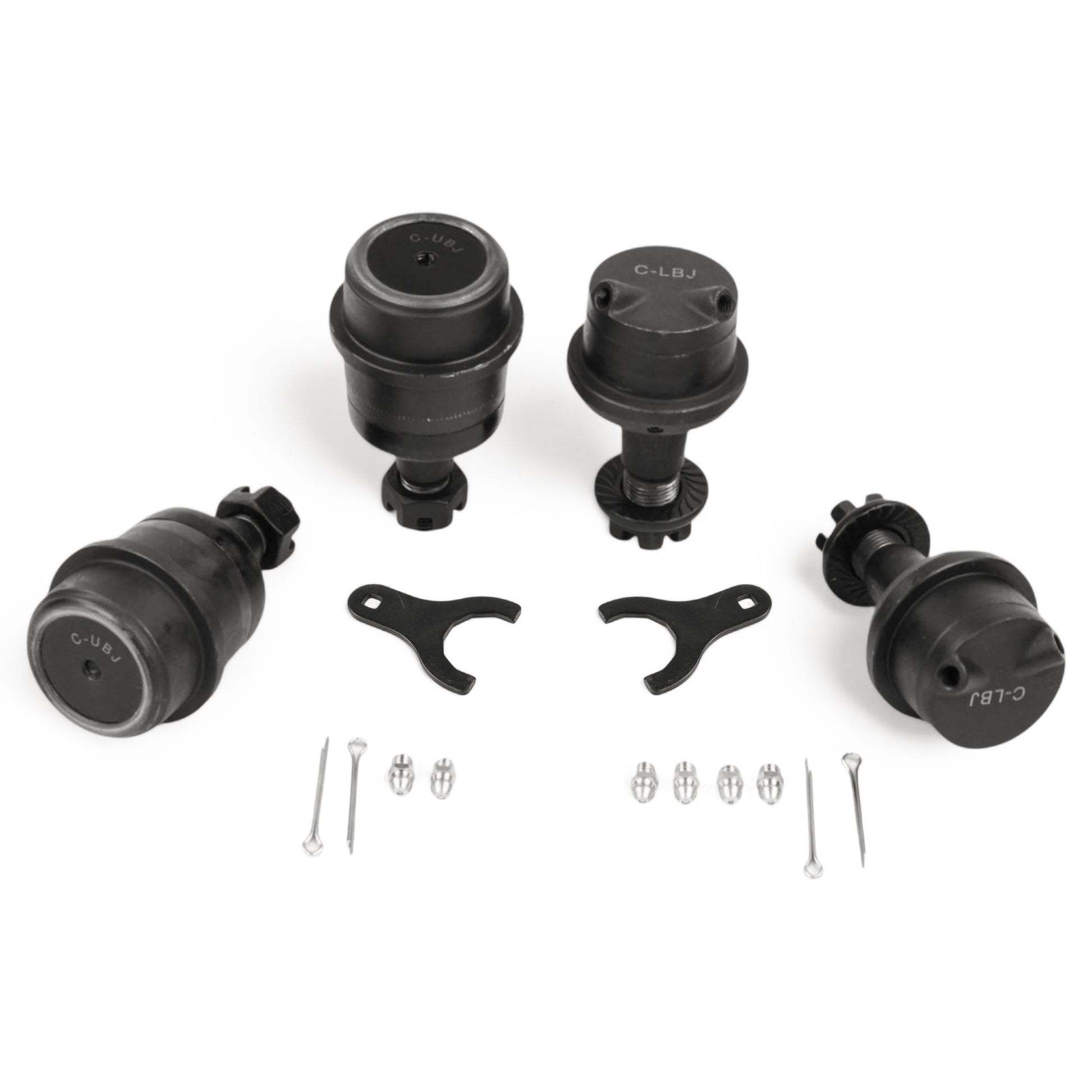 • Both sides of the lower ball joint have 2 grease zerk fittings for easy greasing access.