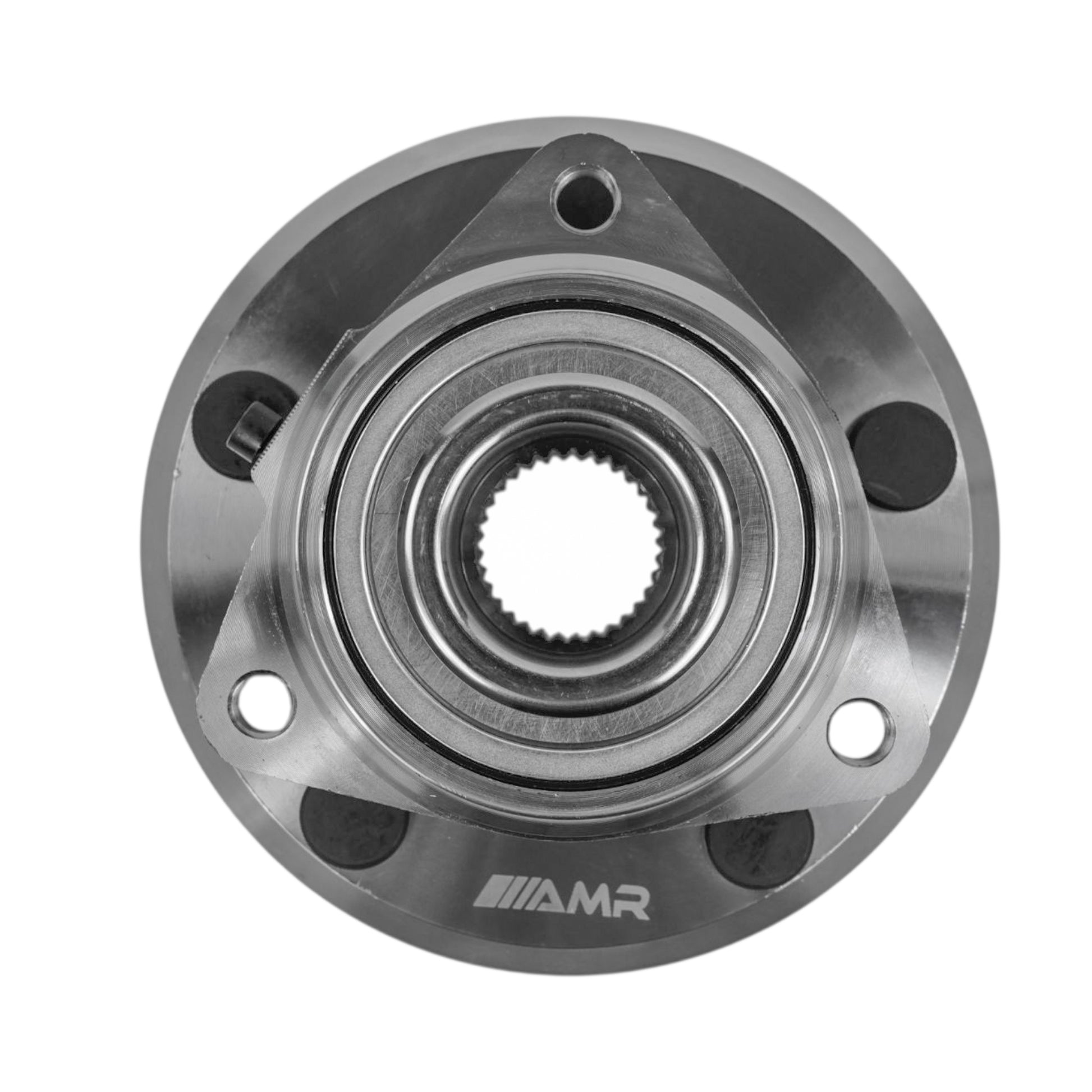 AMR wheel bearing and hub assembly includes a ball bearing designed to handle both axial and radial loads effectively, ensuring reliable performance under everyday driving conditions. The wheel studs are crafted from durable steel and match the original specifications, allowing seamless compatibility with existing disc rotors, wheels, and nuts. This assembly restores the function and appearance of worn or rusted wheel bearing hubs to like-new condition.