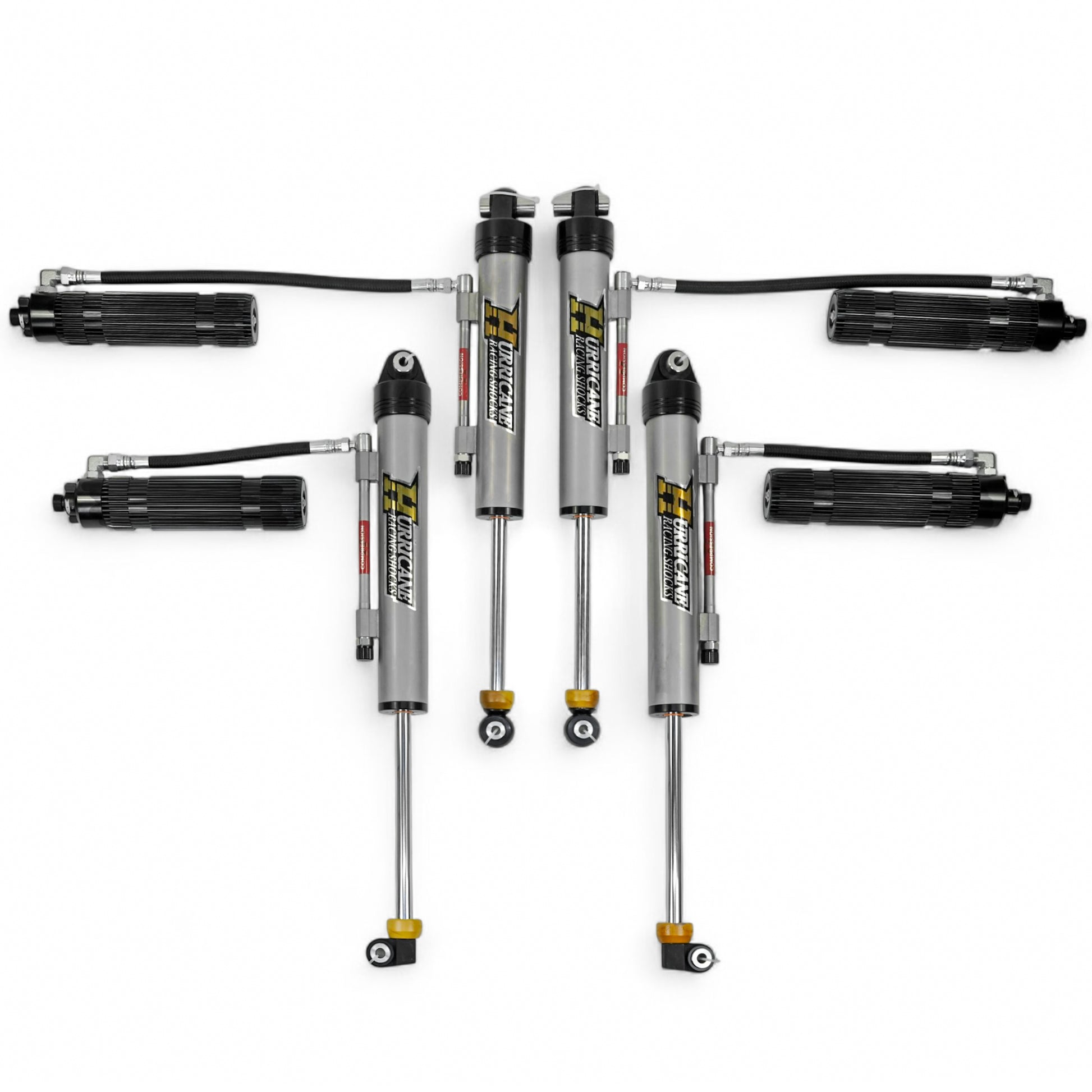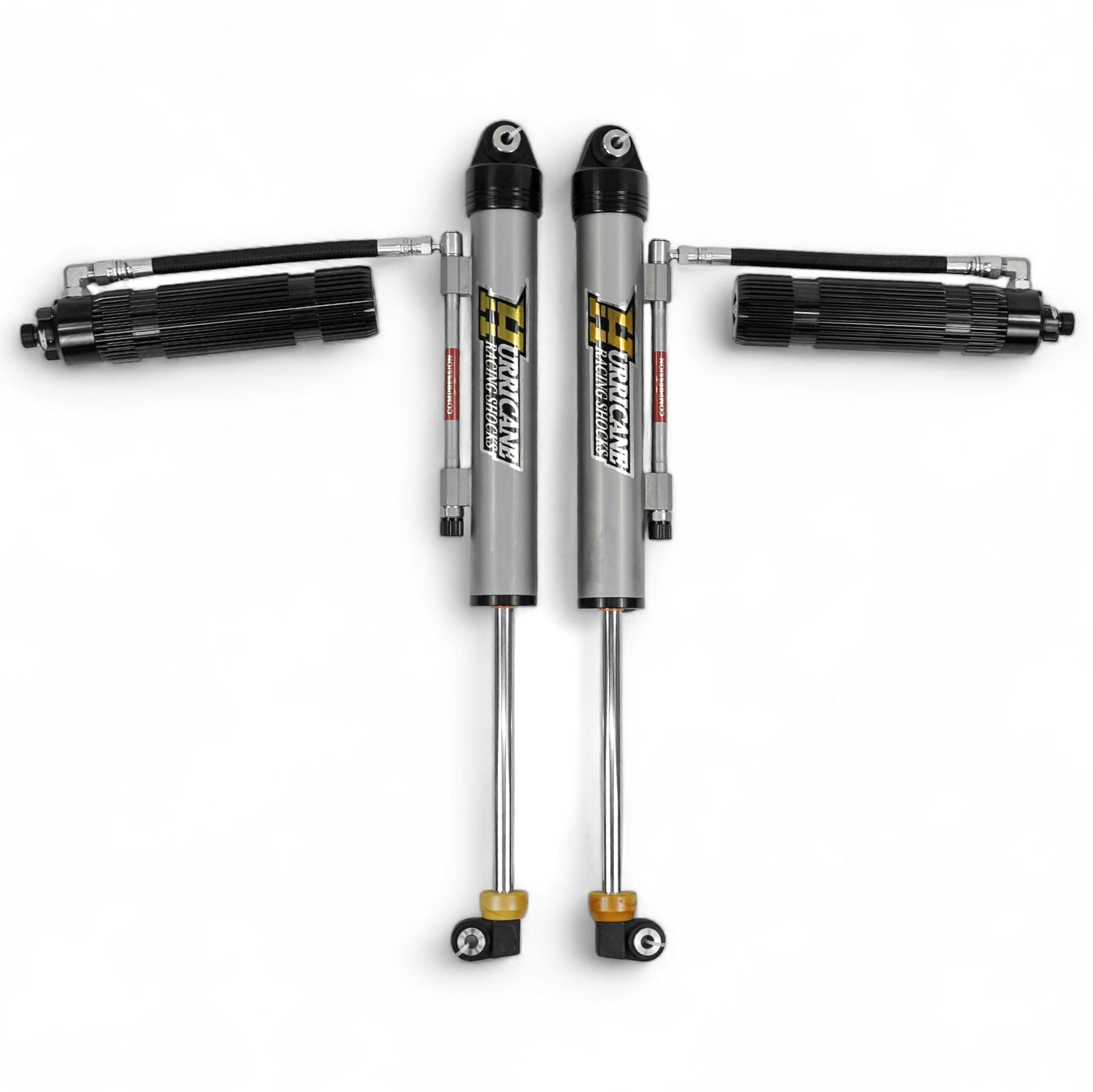 - Hurricane Racing Shocks’ external bypass shocks use precision-engineered steel pistons in the bypass tube, offering improved damping control and longer-lasting durability for serious off-road use. This design is far superior to the Teflon pistons found in some other brands, which deliver lower performance and less durability.