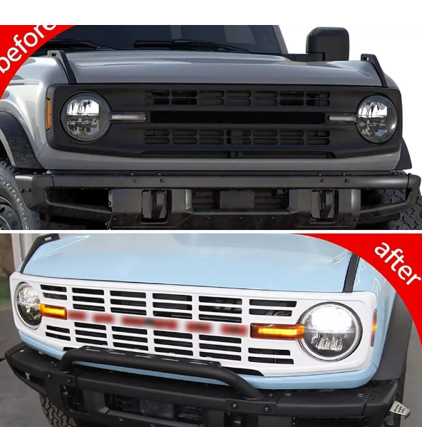The Vintage Grille Gloss White mimics the looks of the OEM Heritage Edition Broncos. The grille harkens back to an earlier time to pay homage to the history of the first Broncos. These vintage style grilles make an excellent upgrade for Base, Big Bend, Outer Banks and other model Broncos. Red grille letters are included. Constructed of high quality ABS plastic, thegrille installs easily using the original hardware.