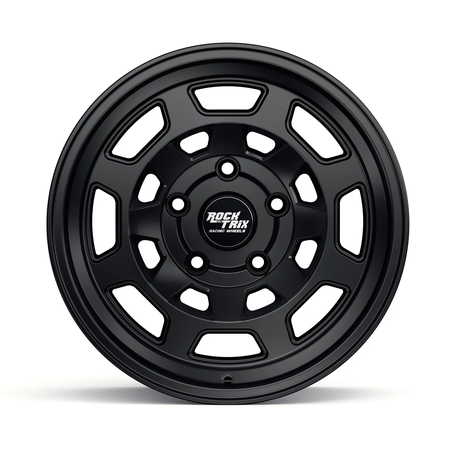The RockTrix RT117 wheel is an eclectic blend of rugged design and contemporary sensibilities. Featuring 2 sets of 8 spokes, this industrial-styled design tells passersby that your vehicle means business.The -12 & -38 offset gives more clearance for bigger, wider tires over factory wheels. Fits everything from the factory 17" tires all the way up to 33, 35, 37 and beyond (Note: Lift kit required for oversized tires). Your rig will look as good as it performs! Compatible with OEM TPMS sensors; new TPMS valve stems may be needed.